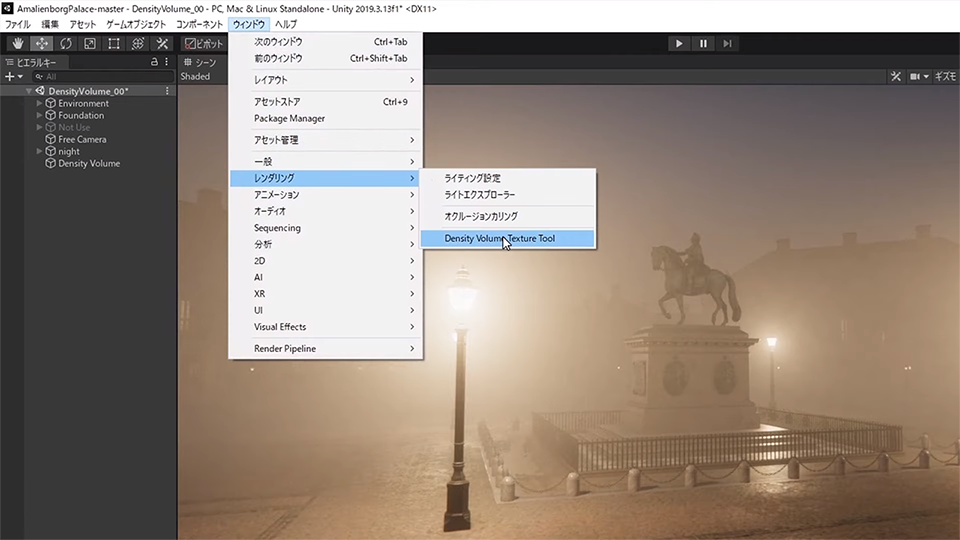 HDRPのボリュームフォグでは、Density Volumeを使う事により、 3D空間に、体積と密度を持ったリアルな霧を再現する事ができます。