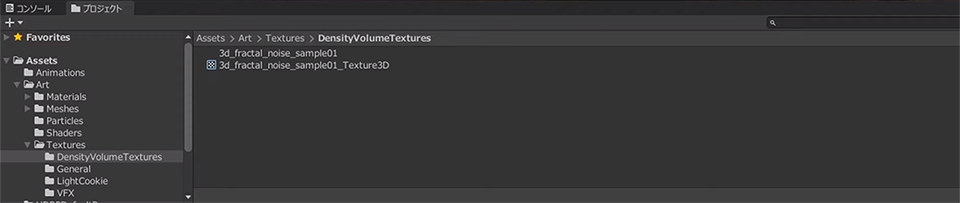 このプロジェクトの中に、3Dテクスチャを用いたDensityVolumeが使われているので、そのアセットを自分のプロジェクトにコピーする、それだけです。