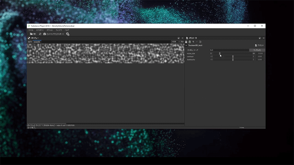 ここに用いるテクスチャは、unityの独自形式による三次元のノイズテクスチャです。