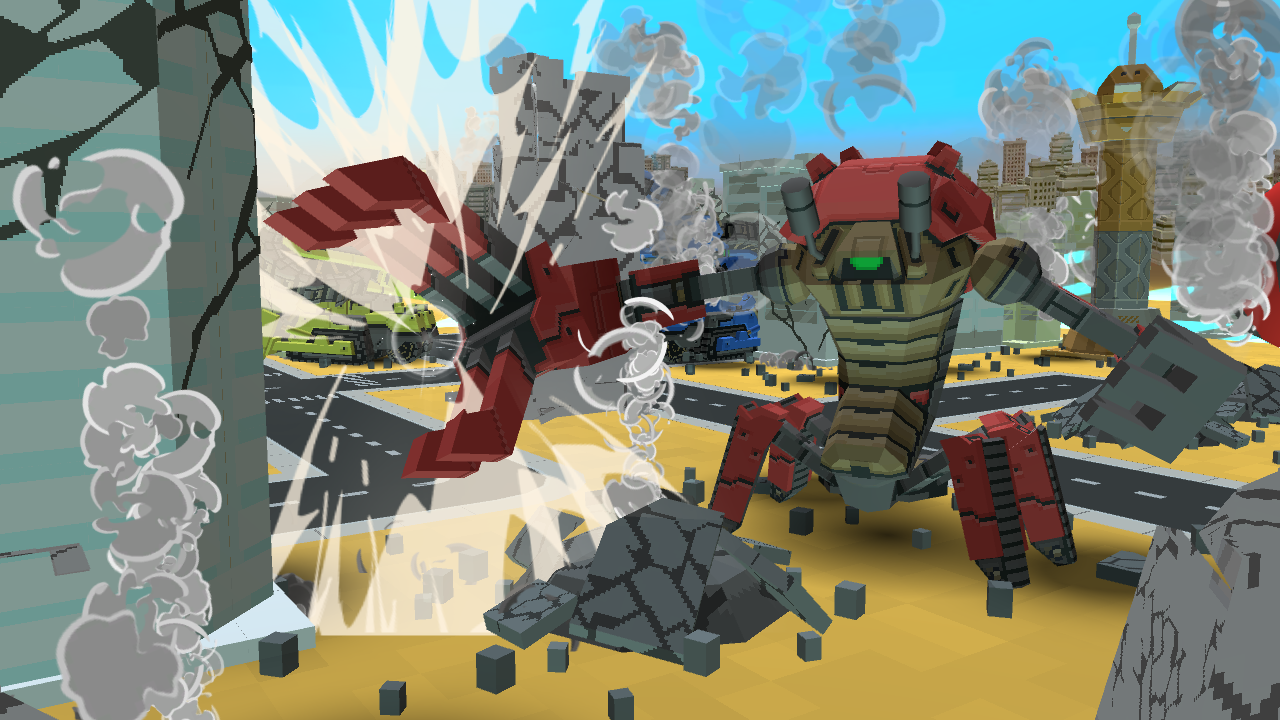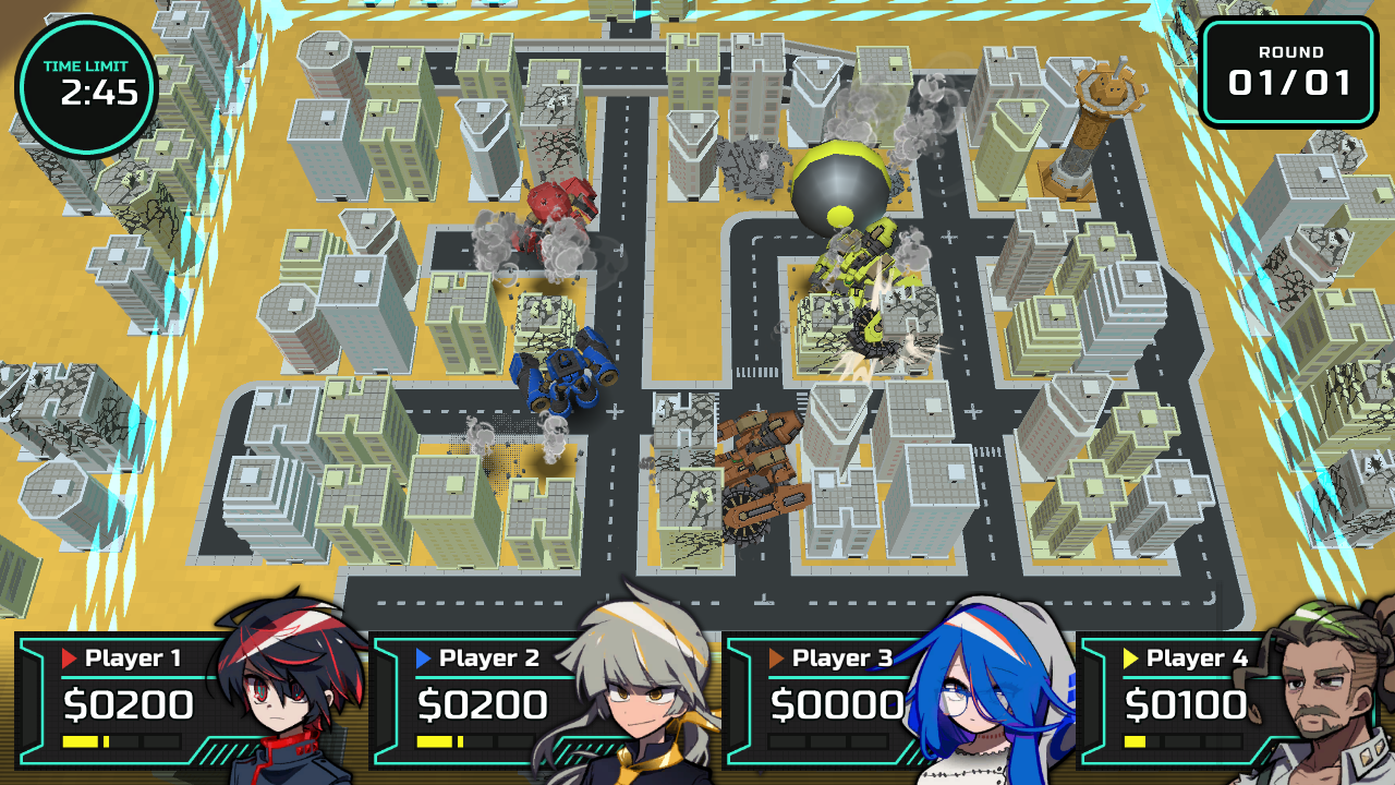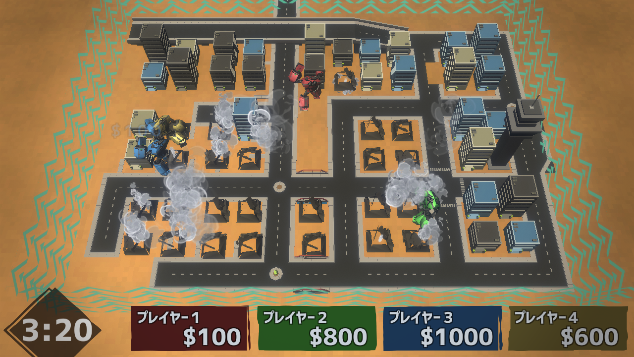 現在私は新作として『デモリッション ロボッツ K.K.』を開発中です。ゲームコンセプトは全く変わり、今回は4人対戦のロボットアクションゲームです。ロボ同士は戦わずに、ひたすらビルを破壊する…というゲームシステムです。このゲームにおいては、作風以外にも「Back in 1995」とは違ったチャレンジをしています。
